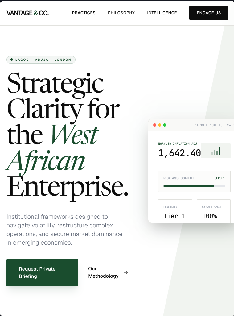 A sharp, professional web identity for a Nigerian business consultancy firm.